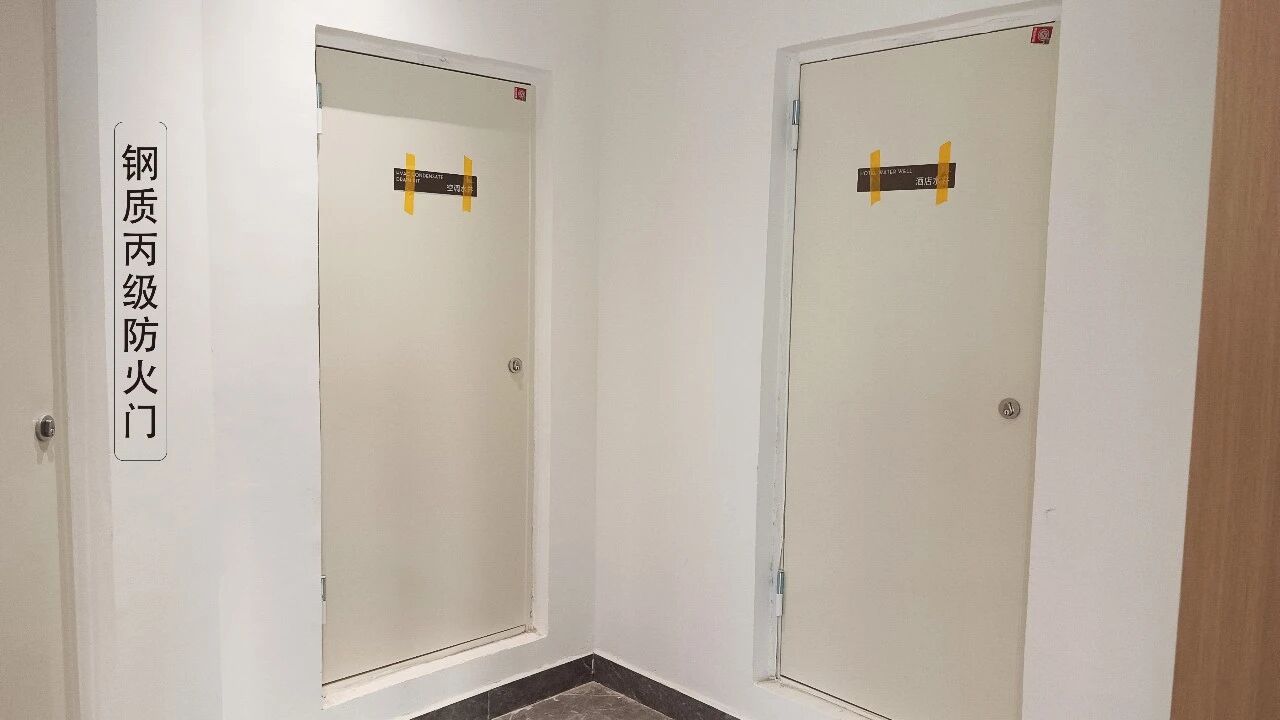 现场部分安装实物效果在各层的管道井,强弱电井中,钢质防火门承担重要的消防防火保障,白色搭配整体墙面,丙级防火门搭配管井锁,方便进行开门检查。